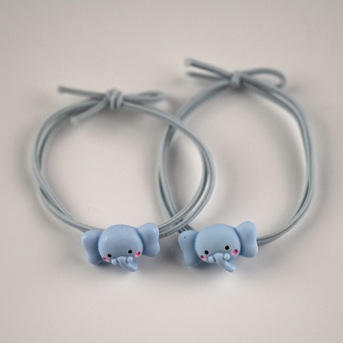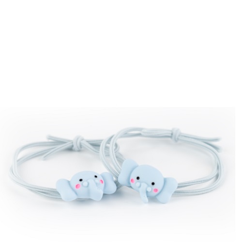 Söt knuten hårsnodd med elefant som detalj. Rolig att göra tofsar eller flätor med som avslutning. Levereras 2 st i en förpackning.