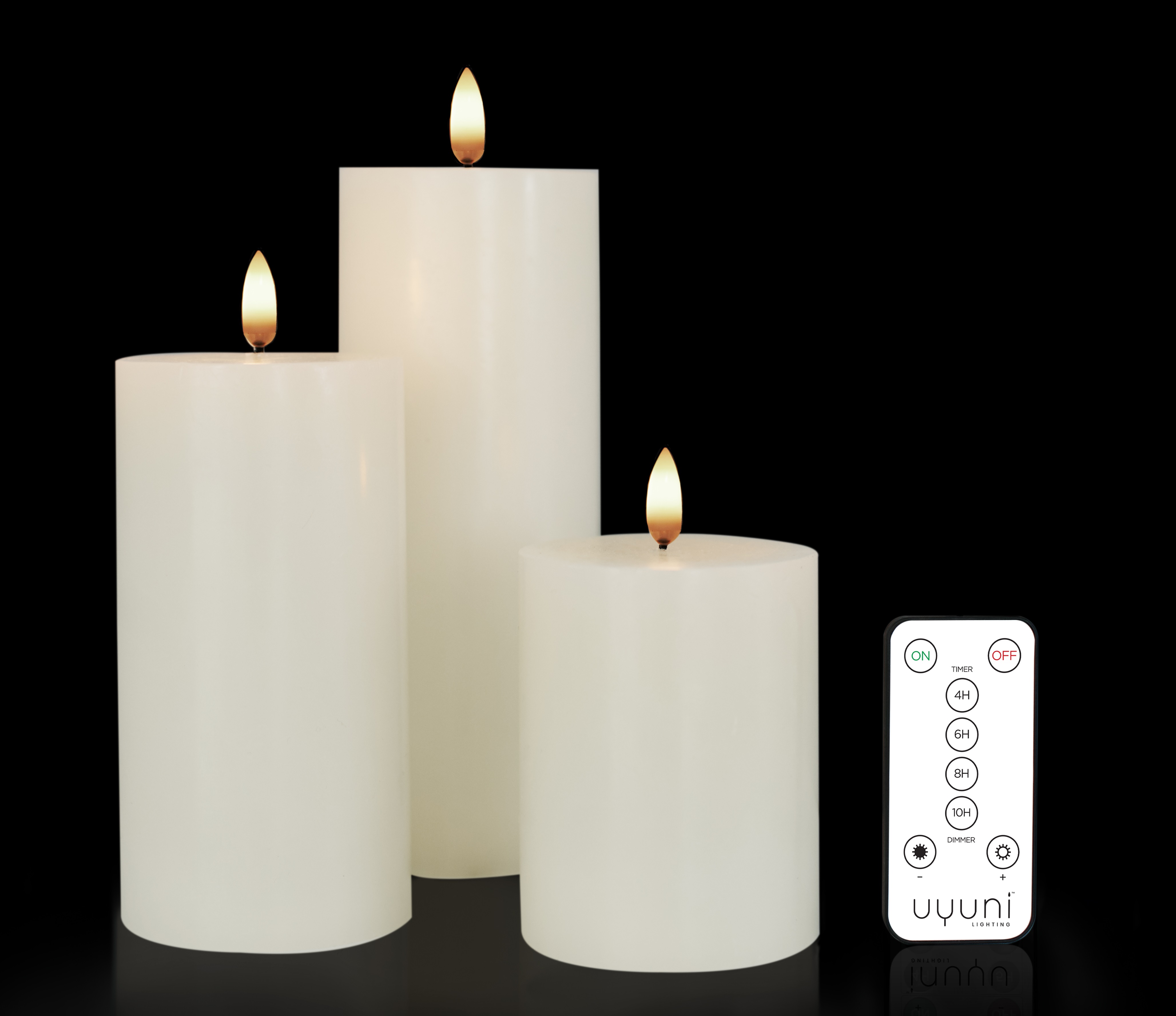 För att underlätta i vardagen och öka bekvämligheten finns det även en fjärrkontroll som är anpassad till LED- ljusen från Uyuni. En stilren fjärrkontroll som du smidigt kan styra dina Uyuni LED-ljus på håll. En praktisk fjärrkontroll som låter dig ändra ljusstyrkan på lågan, möjligheten att välja mellan 4 olika timerlägen samt sätta på och stänga av ljusen med ett knapptryck.