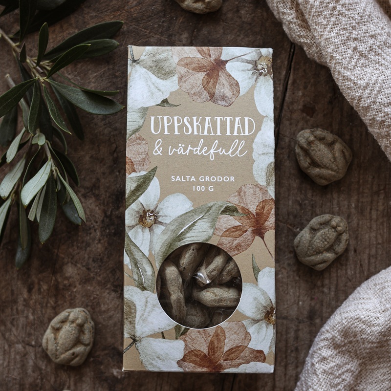 Ge bort mer än bara något gott – ge bort en känsla. Denna vackert förpackade påse med salta grodor från Majas Cottage bär det varma budskapet "Uppskattad & värdefull". En fin gest som både smakar gott och berör hjärtat. Perfekt att ge till någon som förtjänar lite extra uppmuntran, tack eller kärlek i vardagen.