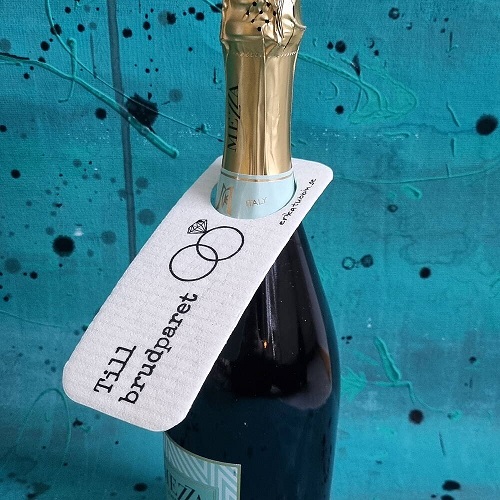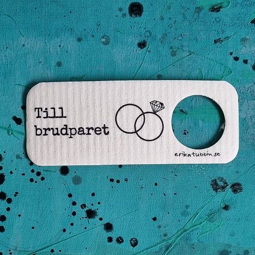 Perfekt att hänga i paketet till brudparet. Kul kort med extra praktisk nytta! Häng om halsen på flaskan, blombuketten eller presenten som ska ges bort. När kortet är givet kan mottagaren använda den som minitrasa eller droppstop för dyrbara droppar!