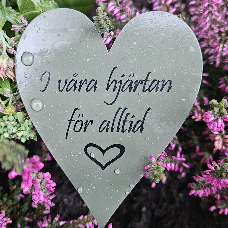 Många efterfrågar något att smycka sin gravsten med. Många tänder ett ljus till minne av nära och kära i hemmet. Där vill man smycka med ljus och en sten med vacker text. Nytt för i år är dessa vackra gravstick med ett vackert hjärta och budskap om man har en plats utomhus för att minnas.