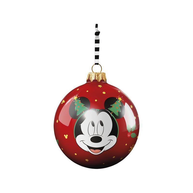 Den här röda julkulan pryds av ett charmigt motiv av Musse i julstämning, dekorerad med små festliga detaljer som sprider värme och nostalgi. Kulan är tillverkad i hög kvalitet och levereras i en elegant presentförpackning – perfekt som gåva till både stora och små Disney-fans.