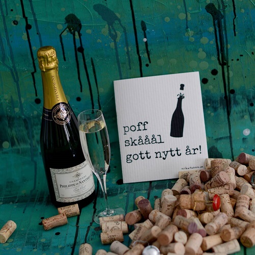 Dags att fira in nya året och första dagen börjar väl alltid vid diskbänken och ta hand om gårdagens fest? Ge bort denna roliga disktrasa tillsammans med en lykta, nalle eller blomma!