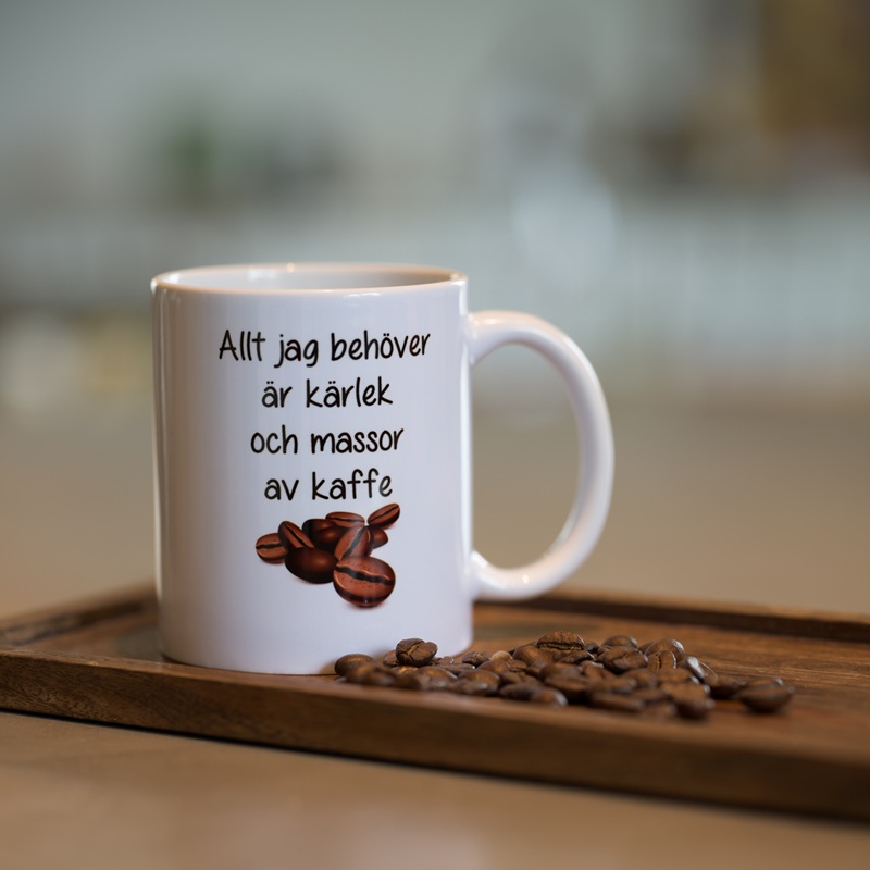 Börja dagen med ett leende och en stadig kopp kaffe! Denna vita mugg rymmer ca 2 dl och är både robust och charmig – precis vad du behöver när kaffet är livsviktigt.