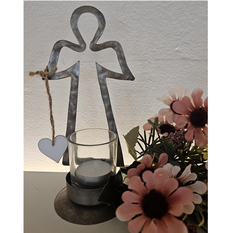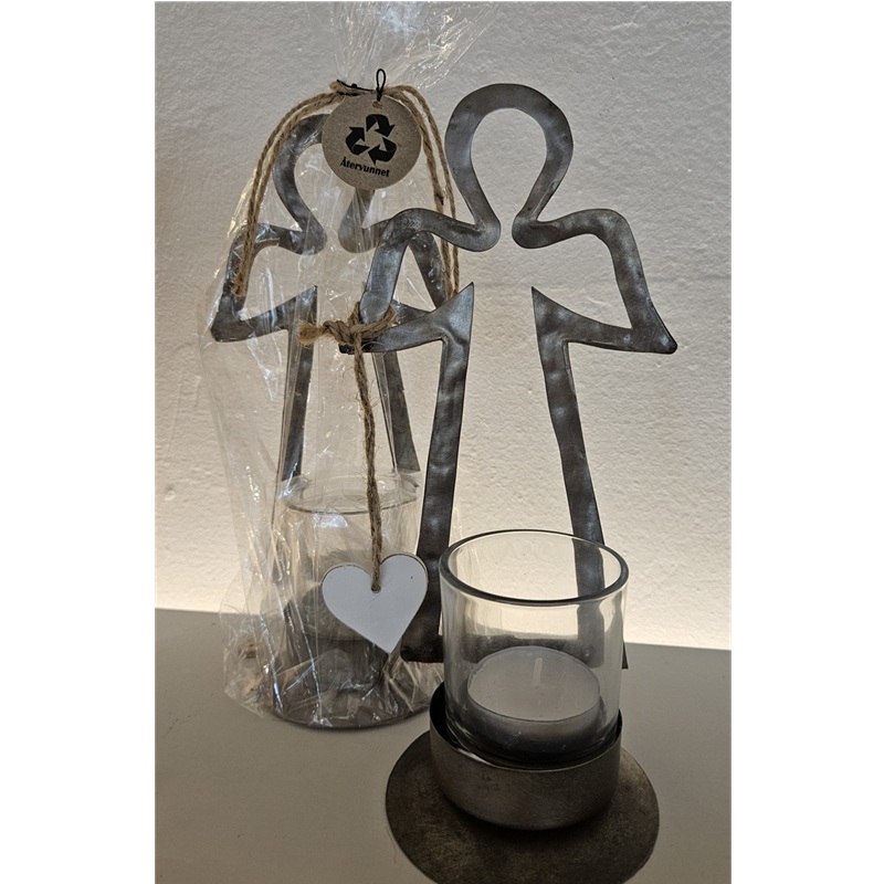 Skapa en fridfull och stämningsfull känsla i hemmet med denna handgjorda ljuslykta i form av en ängel, tillverkad i vackert hamrad plåt av skickliga hantverkare på Bali.