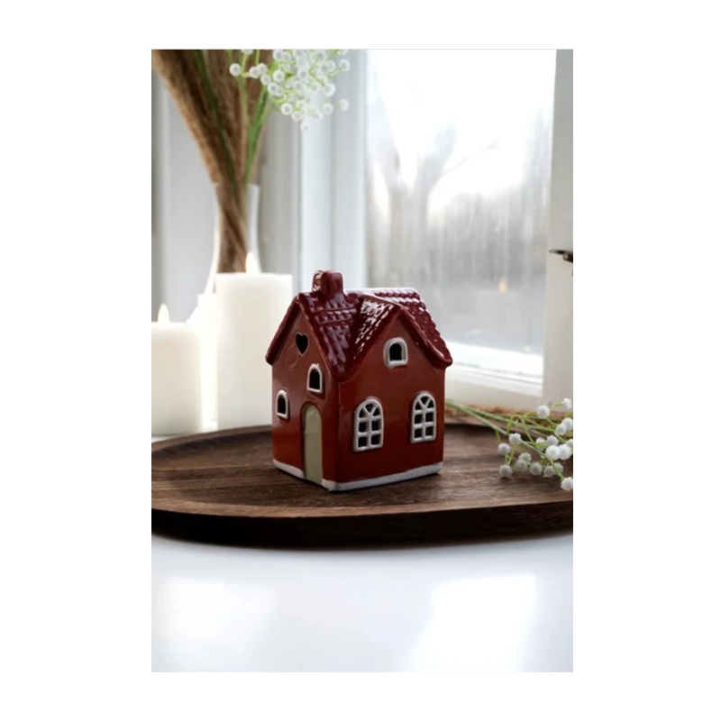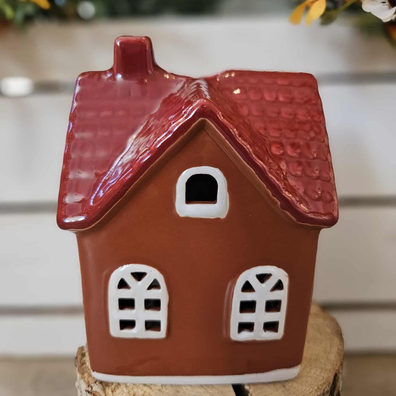 Skapa en varm och inbjudande känsla i hemmet med detta dekorativa keramikhus. Den handgjorda designen, tillsammans med den lilla välvda dörren och naturliga ljussättning, ger huset en rustik och hemtrevlig karaktär. Perfekt som del av din höst- eller vinterinredning, eller som ett stämningsfullt inslag i en juldekoration.
