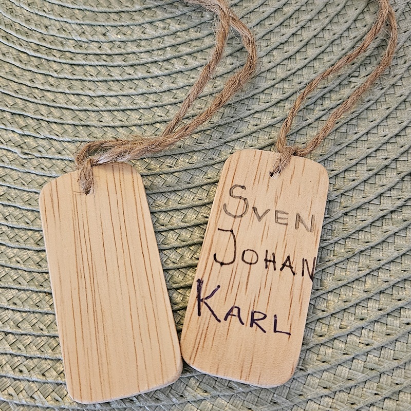 När du vill skriva namn som du själv bestämmer. Bra när man vill ge bort present och dessa går utmärkt med både blyers, bläck eller brännpenna. Storlek ca 8 x 4 cm.